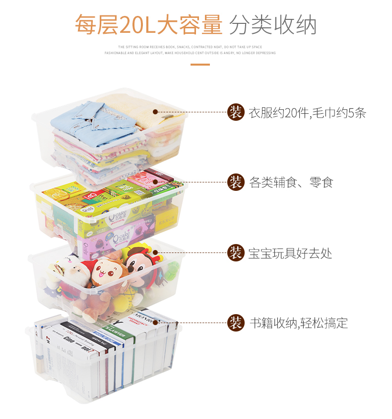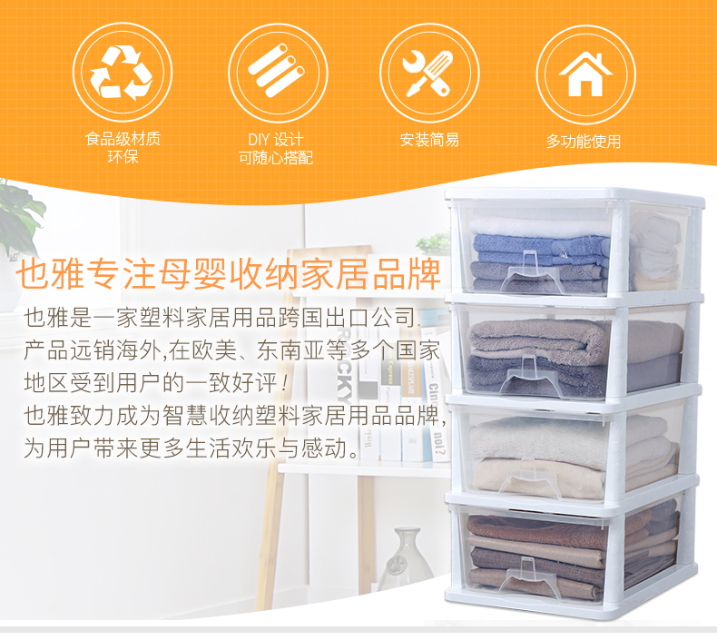 商品名称:也雅(Yeya)G-41315T 抽屉式收纳柜/储物柜/黑框透明柜 34cm 5层
