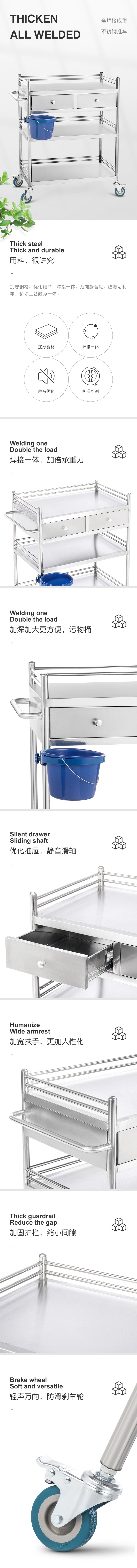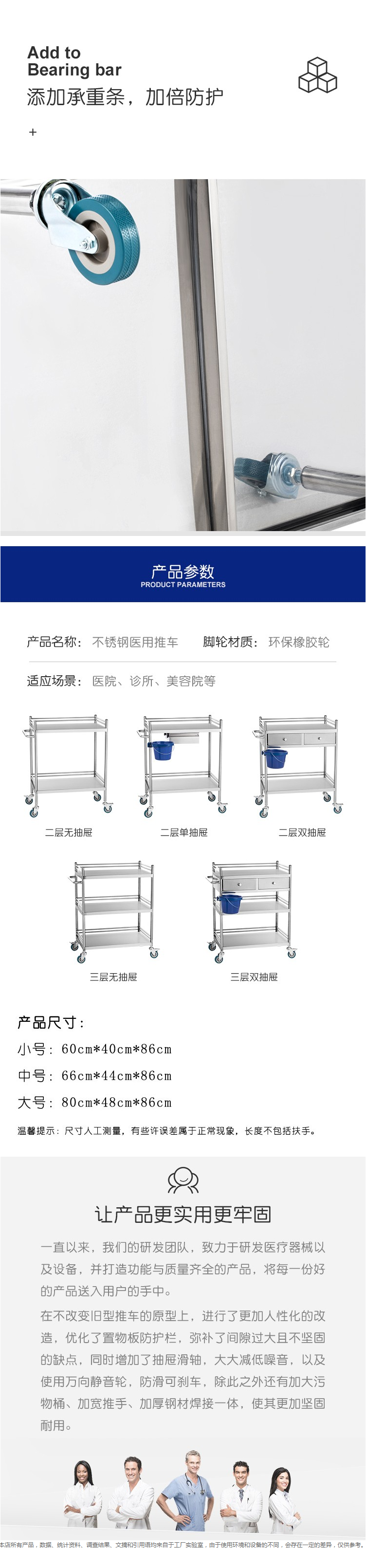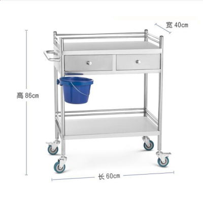 商品名称:医用不锈钢治疗车 多功能美容医疗小推车置物架 二层豪华双抽小号(60x40x86cm)