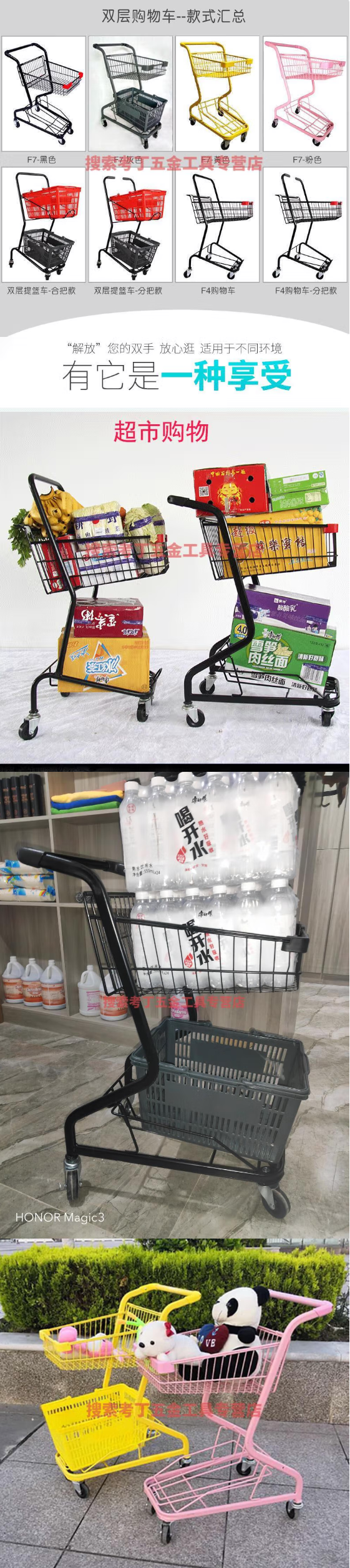 商品名称:双层小型理货车铝合金手推车