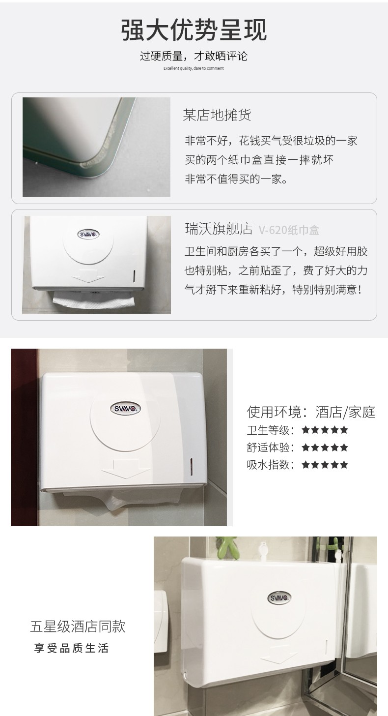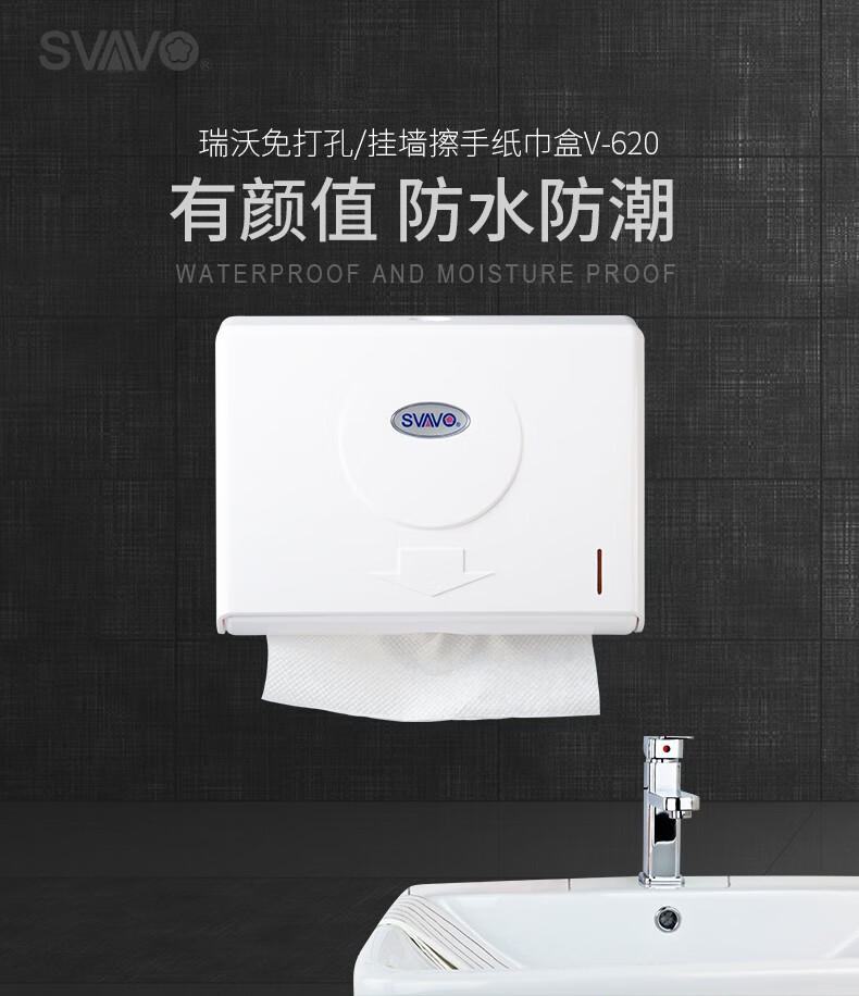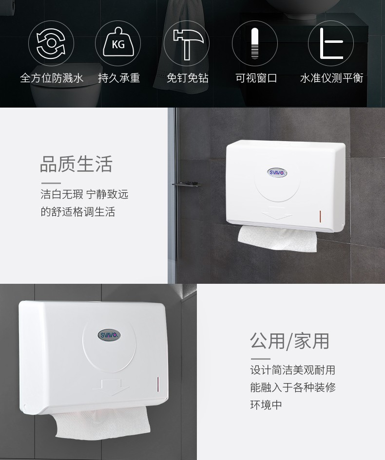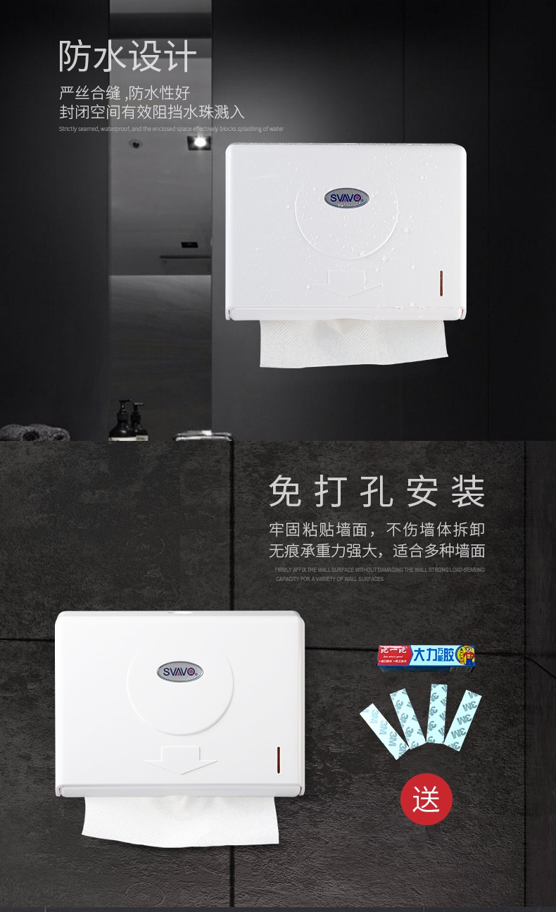 商品名称:瑞沃(SVAVO)V-600 壁挂式擦手纸盒 免打孔抽纸盒 白色