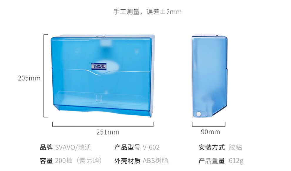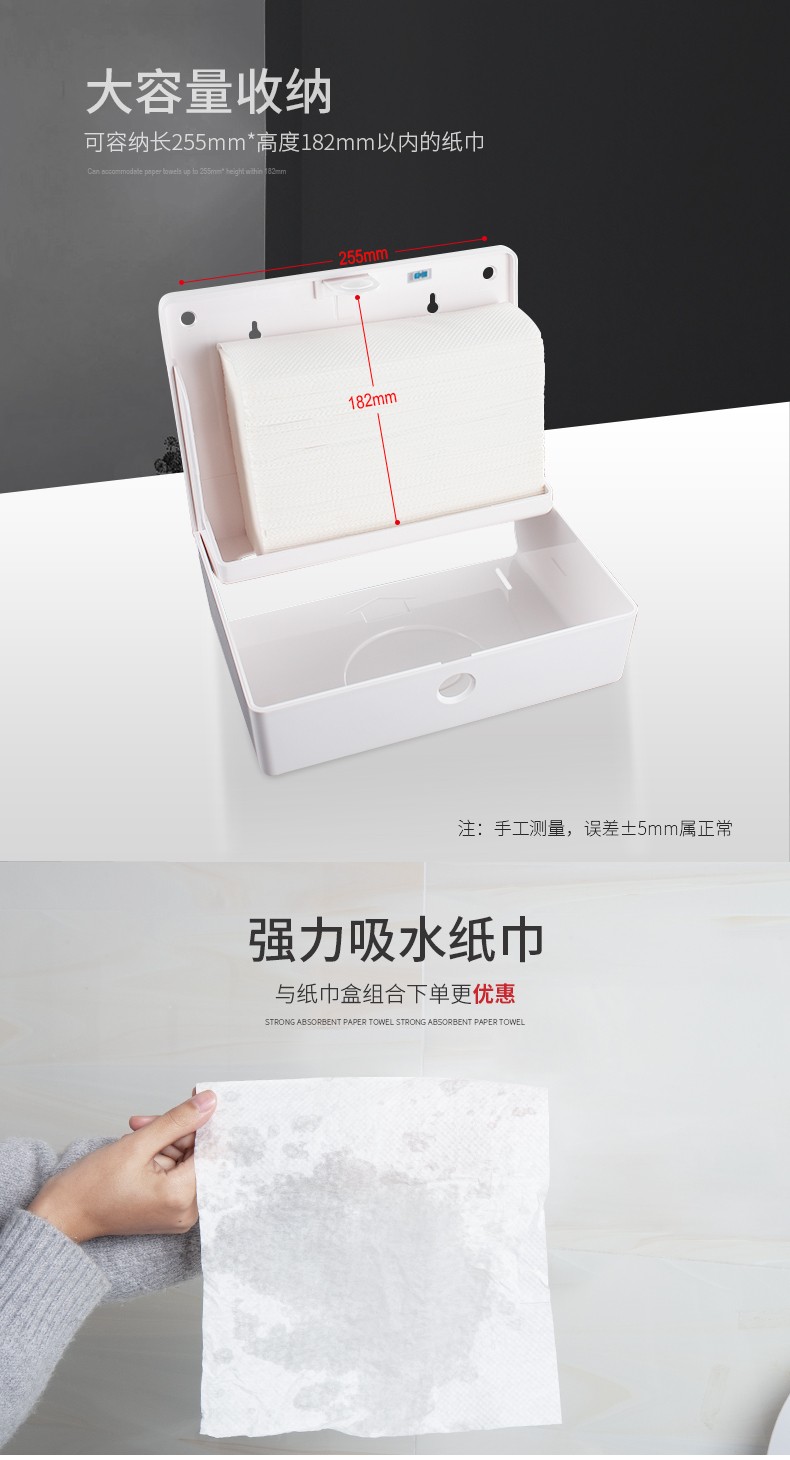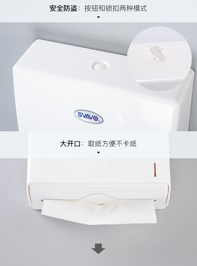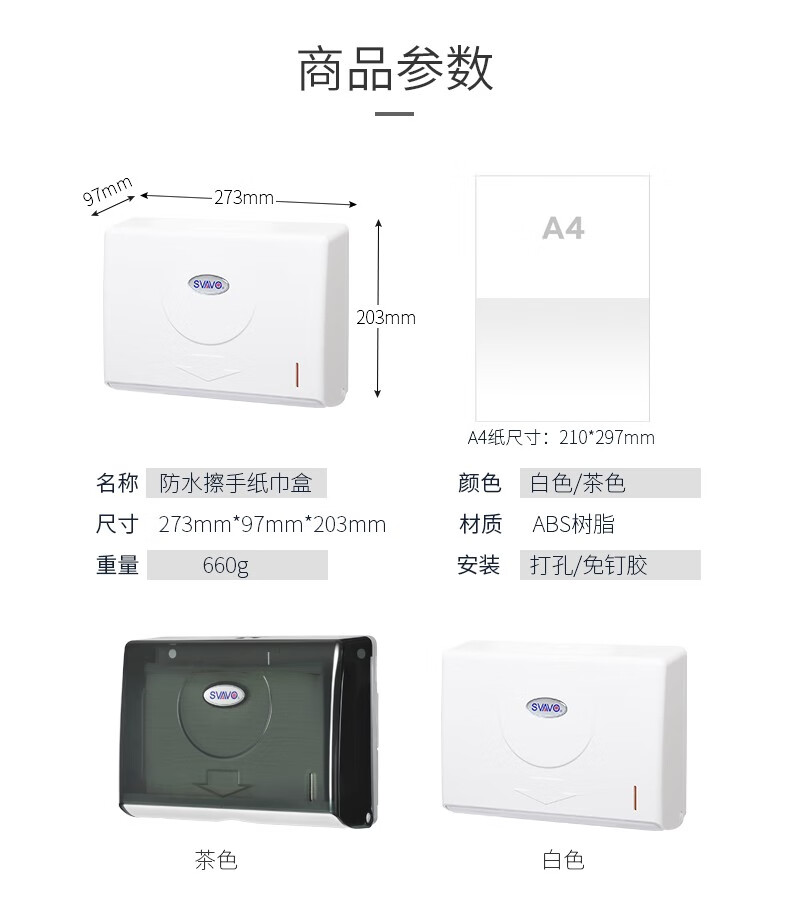 商品名称:瑞沃(SVAVO)V-600 壁挂式擦手纸盒 免打孔抽纸盒 白色