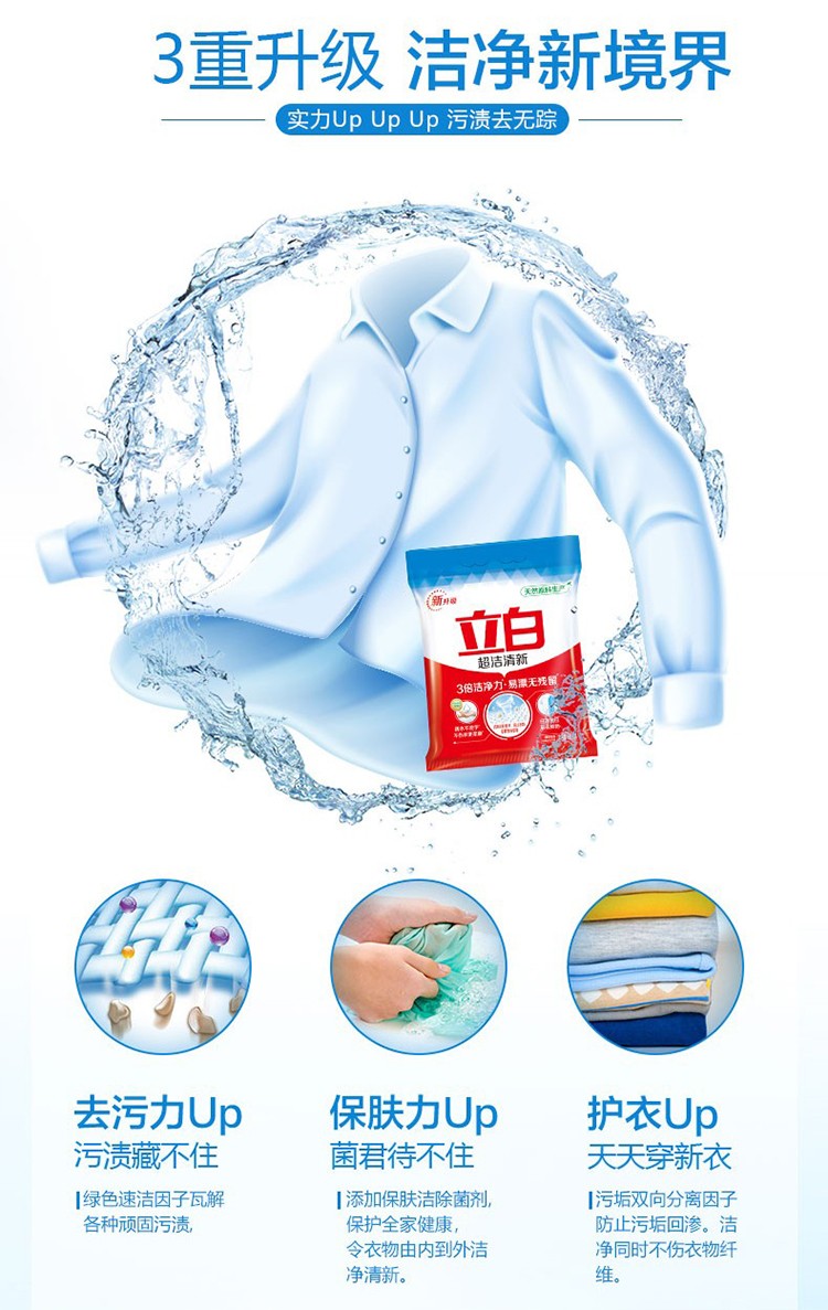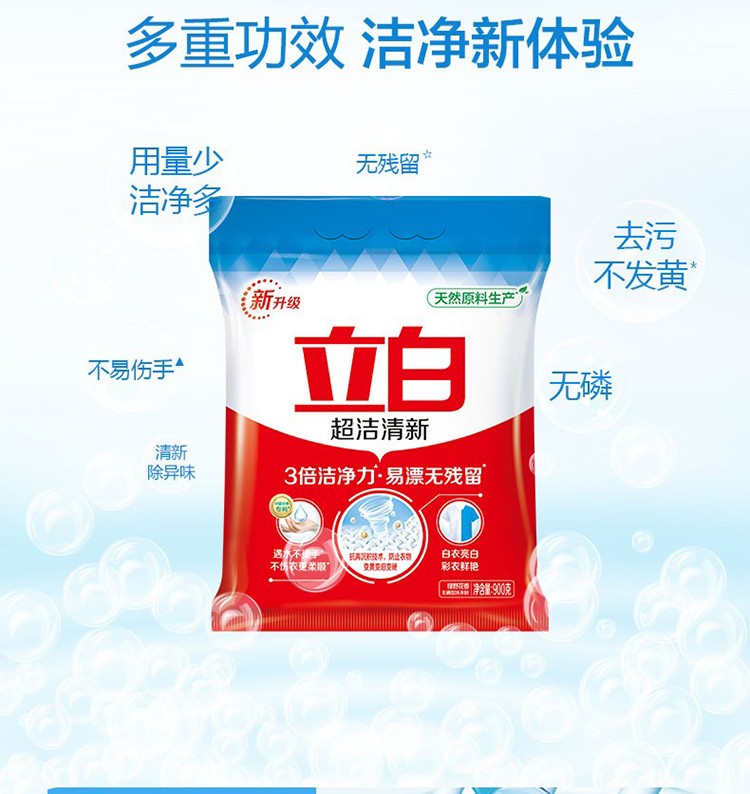 商品名称:立白(liby)洗衣粉 三倍洁净力 超强去污洗衣粉 900g*6袋/箱