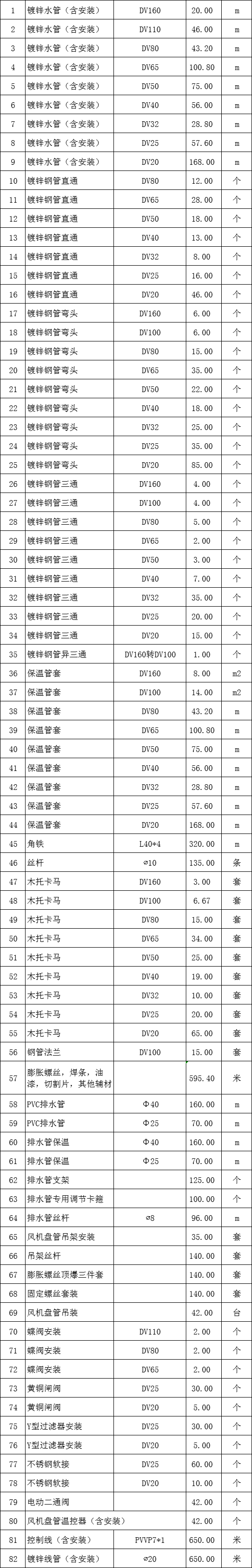 商品名称:麦克维尔中央风机盘管制冷设备水管安装配件整套(含安装/人工/材料/调试费) 单位:套