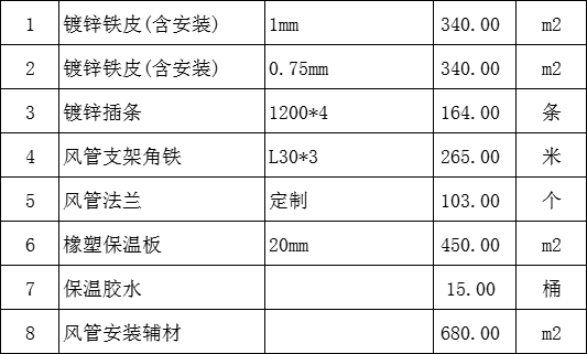 商品名称:麦克维尔中央风机盘管制冷设备风管安装配件整套(含安装/人工/材料/调试费) 单位:套