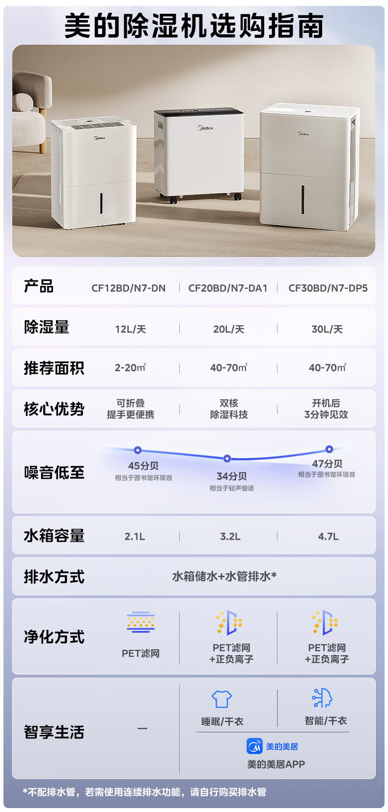 商品名称:美的(Midea)小海绵除湿机 双核抽湿家用WiFi正负离子净化轻音除湿器室内防潮防霉干燥机烘干机CF20BD/N7-DA1